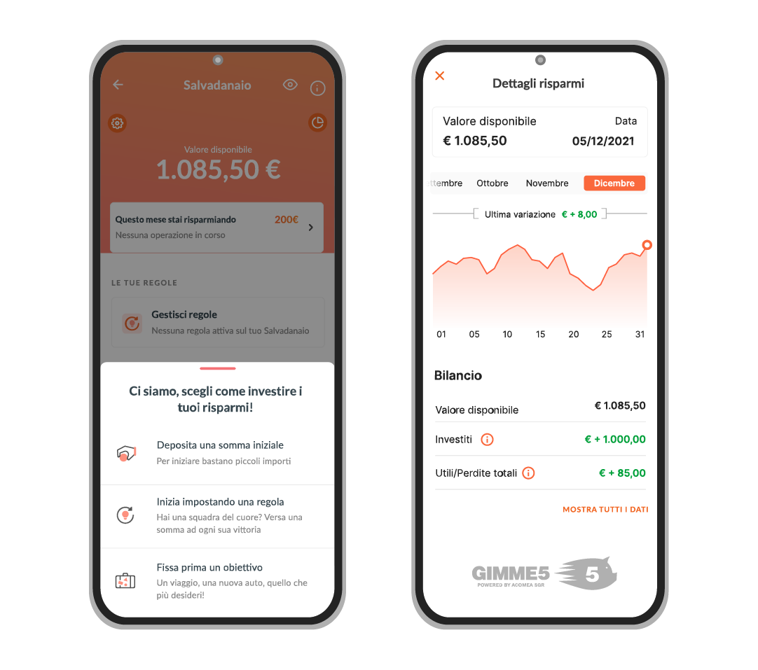 Che sia una vacanza, un acquisto importante o un regalo, puoi attivare contemporaneamente fino a 5 obiettivi di risparmio e investire per raggiungerli.