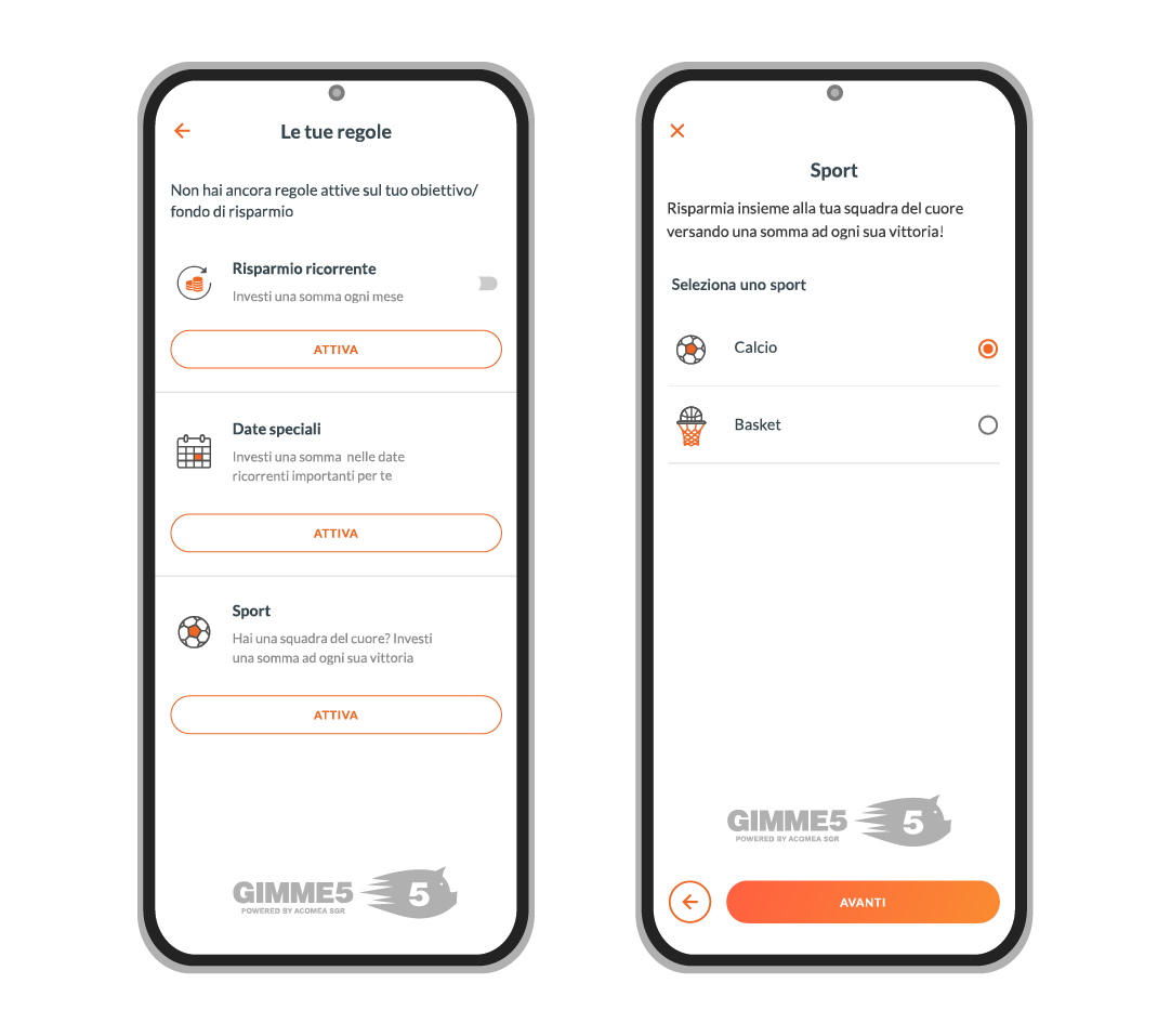 Attiva una regola scegliendo tra quelle automatiche che preferisci. Possono aiutarti a raggiungere i tuoi obiettivi di investimento piu velocemente.